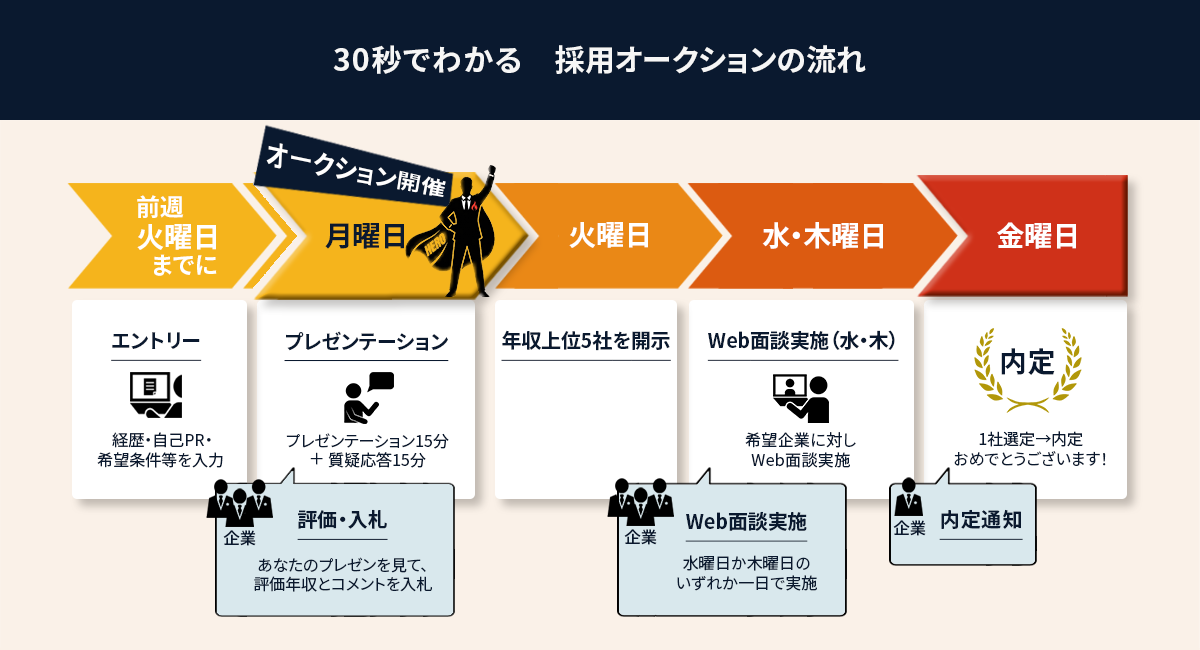 転職における「選択肢の多さ」は、そのままあなたの市場価値に直結します。30代前半で行動を起こすか、後半まで引き延ばすかによって、挑戦できる職種の「種類」と「質」は大きく変わってしまうのです。 特に**「未経験職種」への挑戦は、年齢の壁が立ちは... 【元自衛官特化】採用オークション