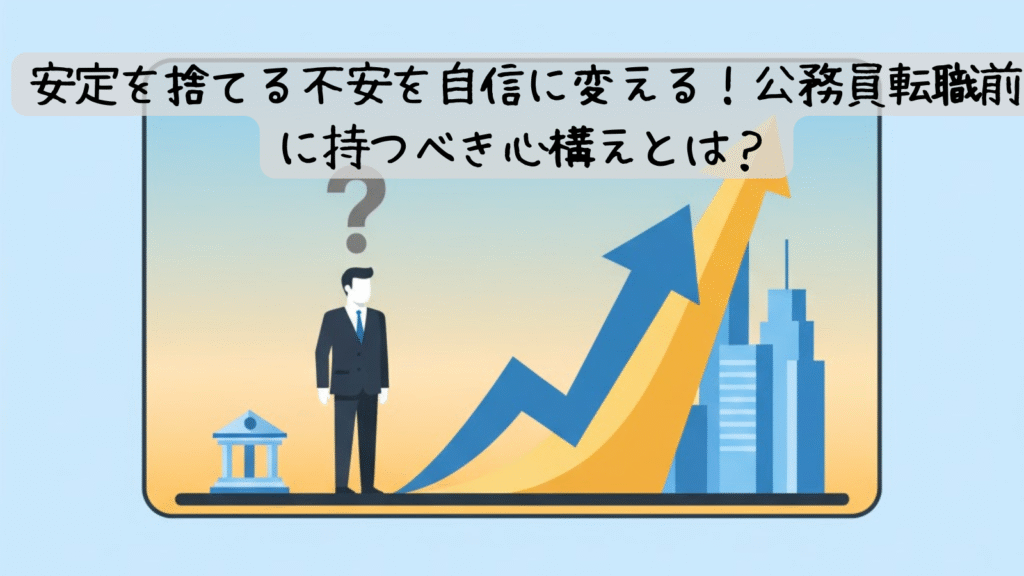 メンタルは、転職活動という情報戦における最大の武器です。この心構えを身につけ、あなたの決断を確固たる自信に変えましょう。さあ、あなたのキャリアアップのための心の準備を始めましょう。 【公務員 転職】安定を捨てる不安を自信に変える心構えの必... -