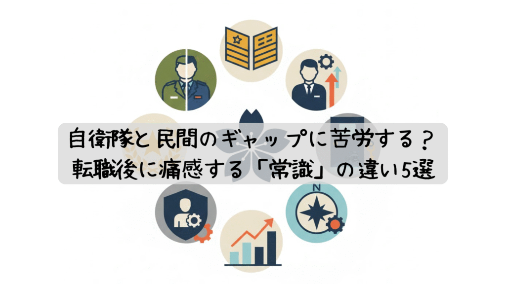 自衛隊、特に幹部自衛官の世界は、規律と伝統に守られた特殊な社会です。そのため、民間企業に飛び込んだ瞬間に「えっ、そんなのアリ?」と戸惑うことが山ほどあります。 この**「文化のギャップ(カルチャーショック)」**に適応できず、「やっぱり自衛隊... -